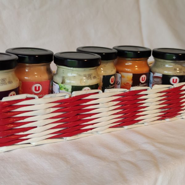 Ce panier réalisé en eco vannerie peut contenir de l’ail, des échalottes et des oignons. Dimensions : 20 cm Hauteur x 18 cm Diamètre Toutes mes créations sont faites en papier journal.